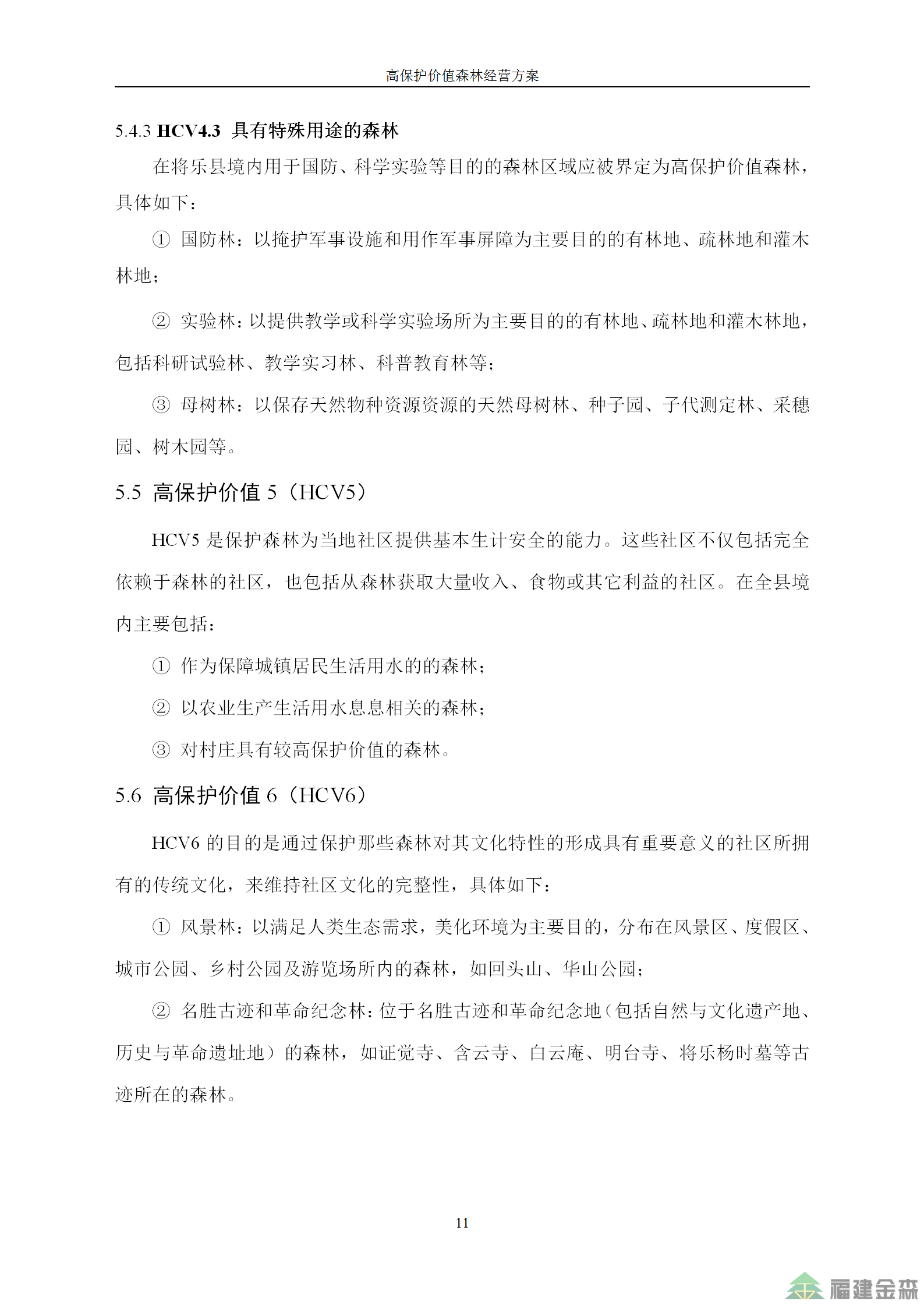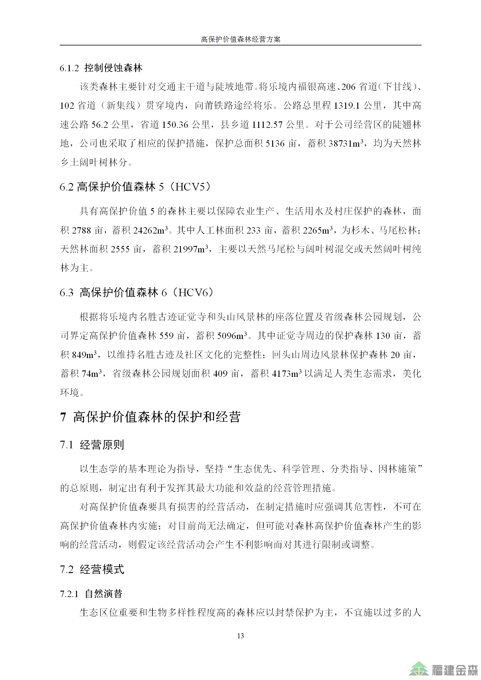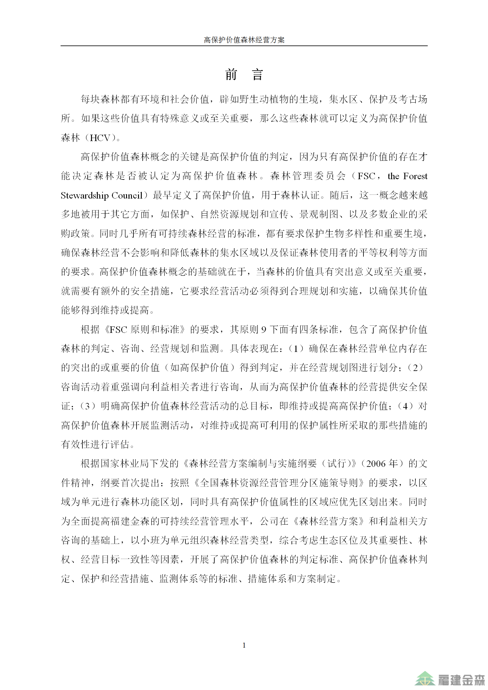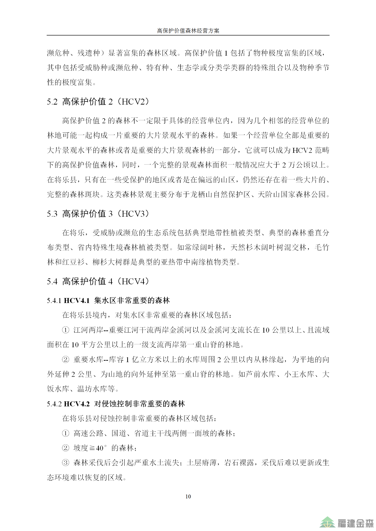 福建金森林業股份有限公司高保護價值森林經營方案