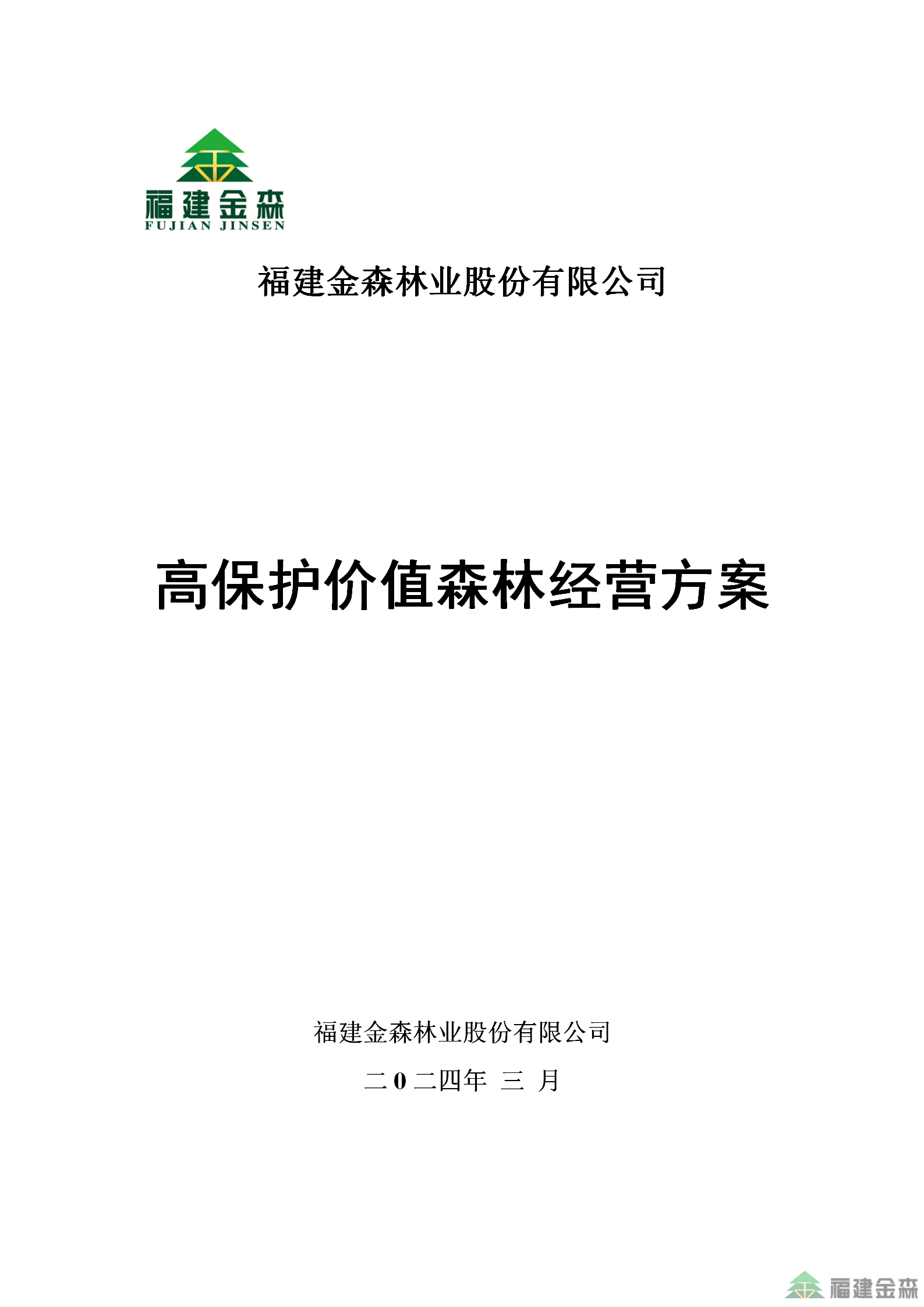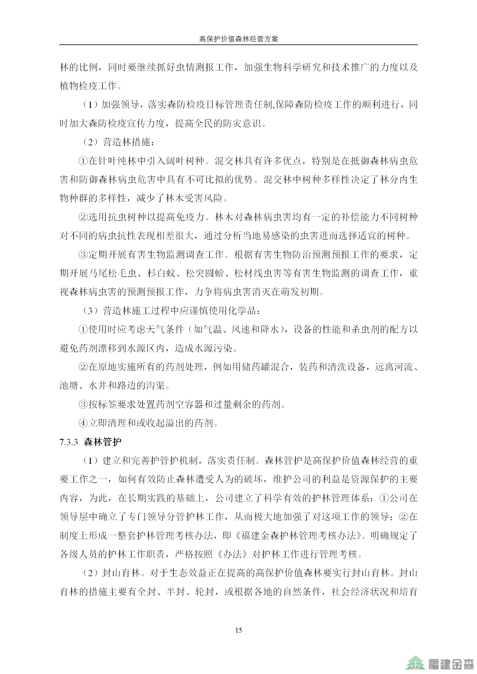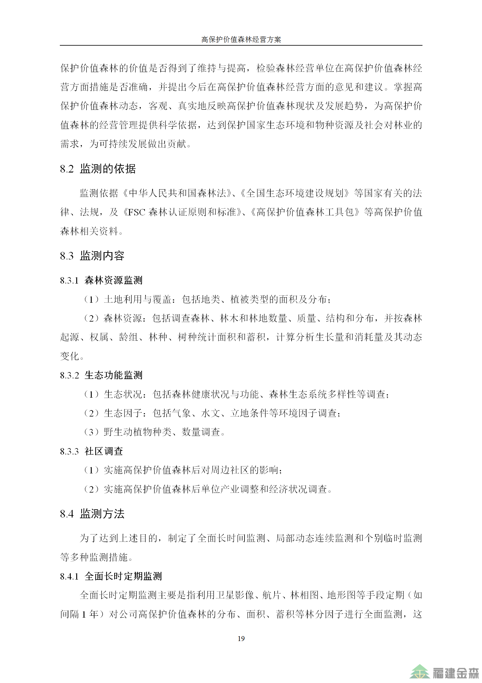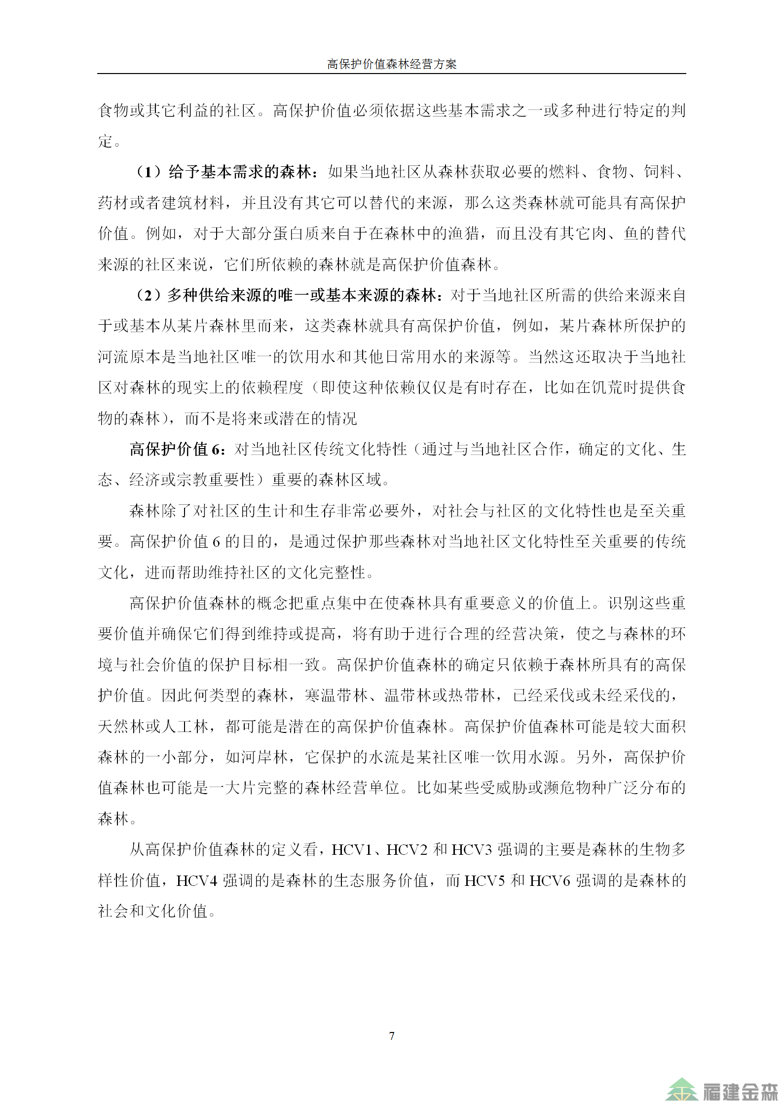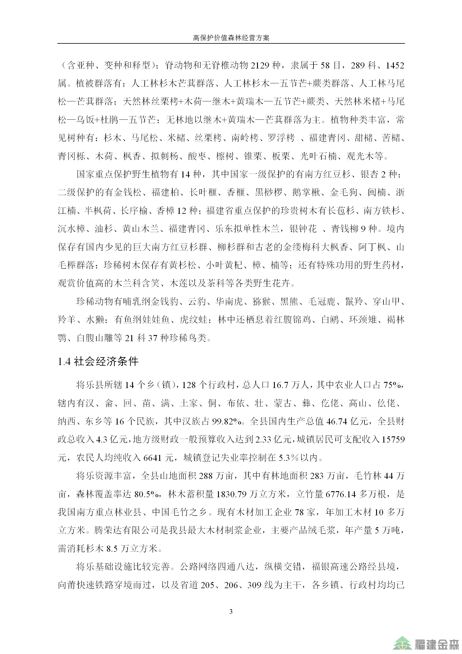福建金森林業股份有限公司高保護價值森林經營方案