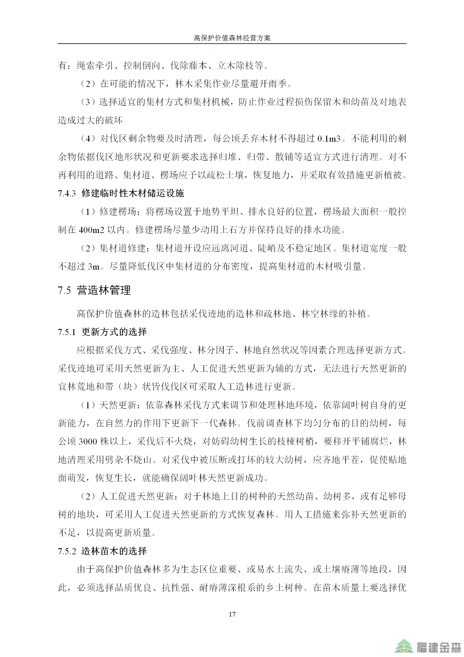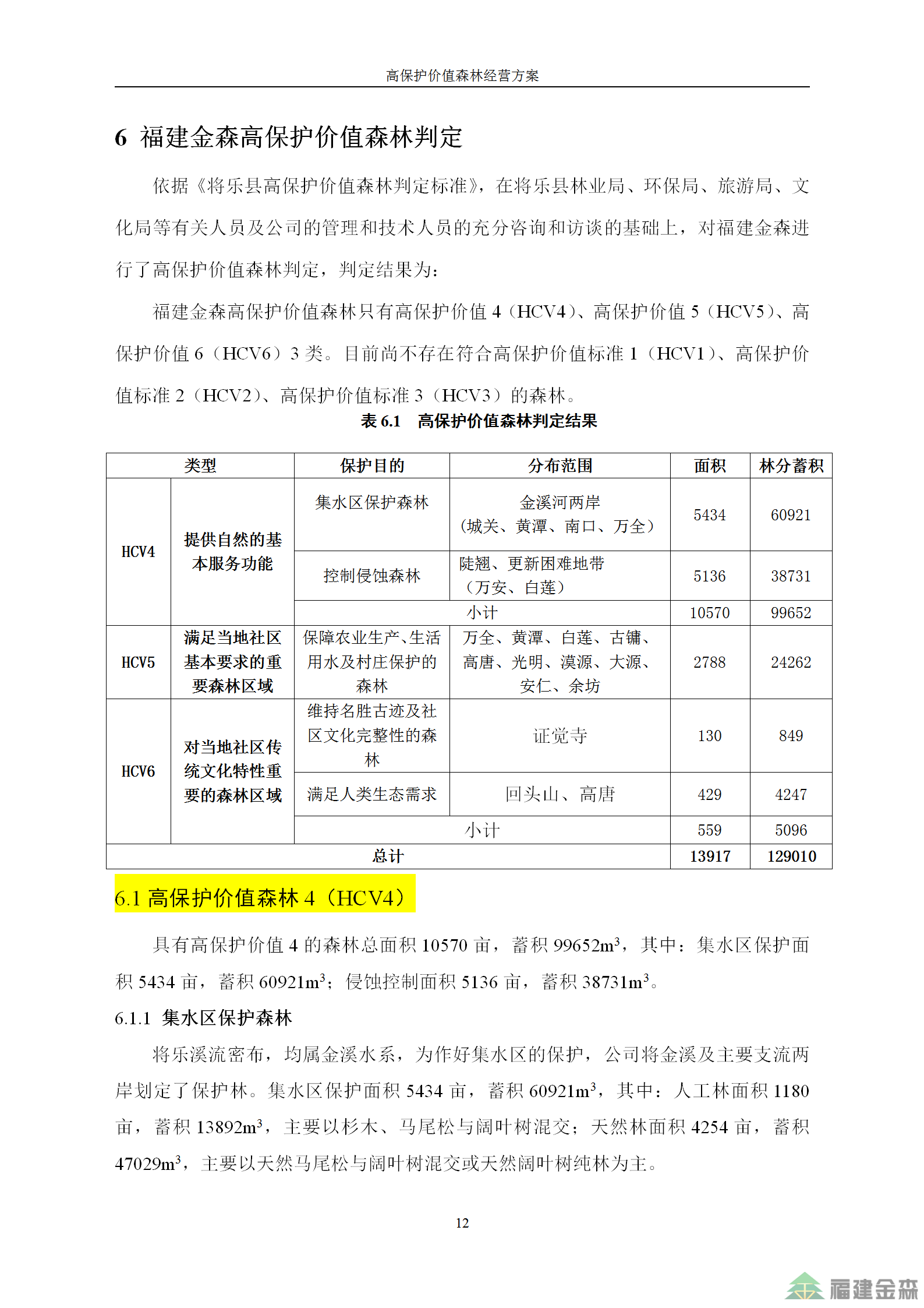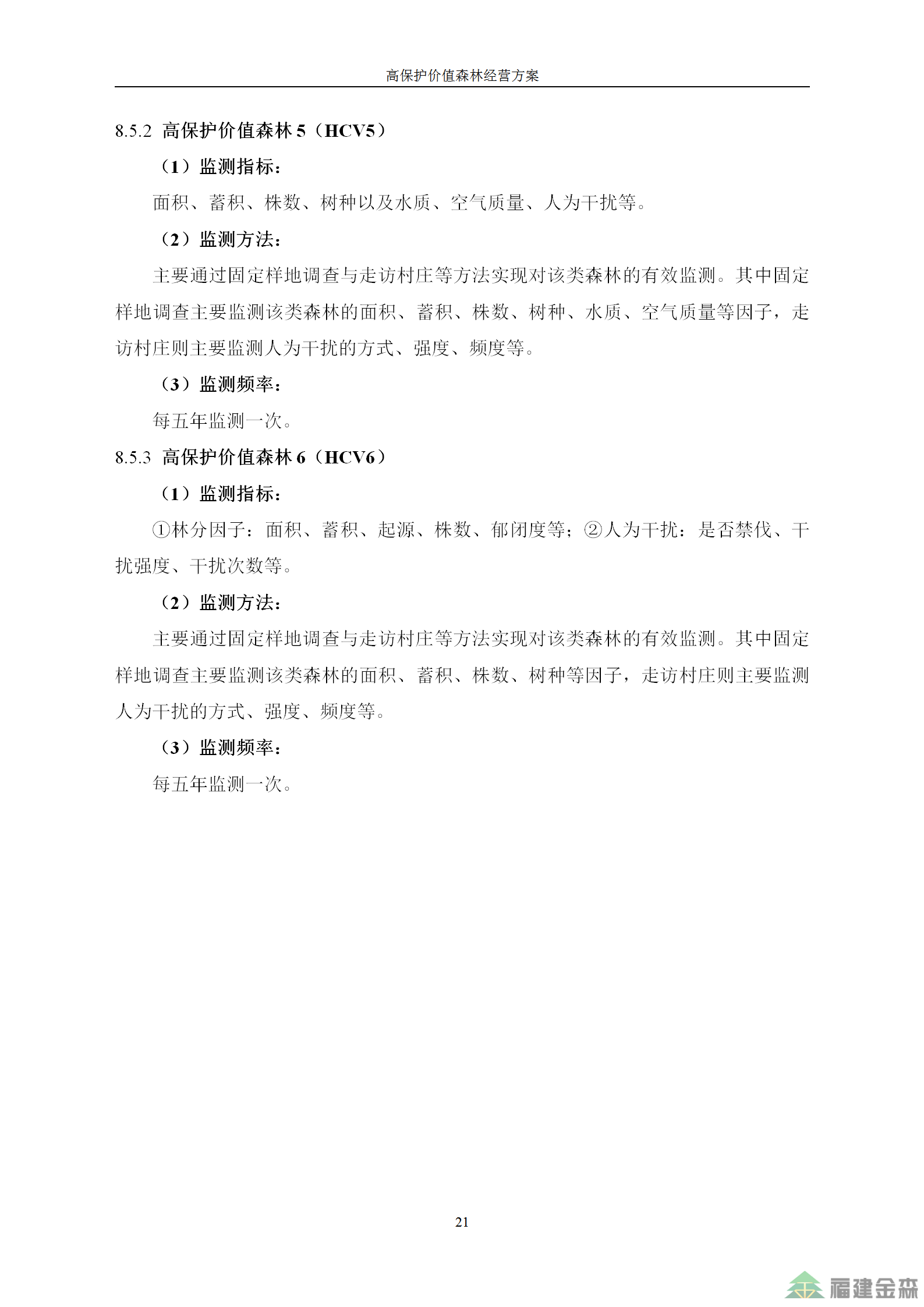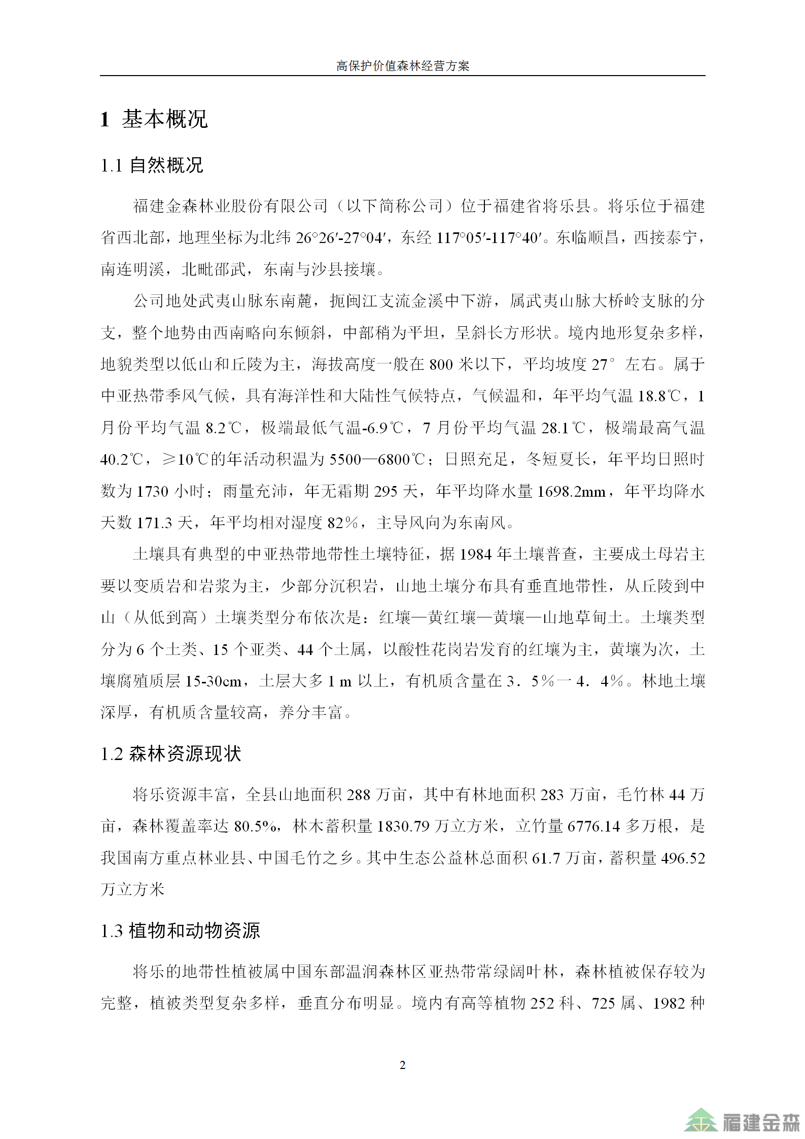 福建金森林業股份有限公司高保護價值森林經營方案